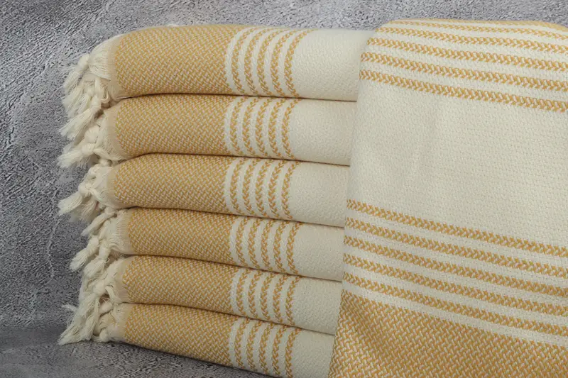 Striped Towel Mustard Cotton Beach Towel, Organic, 40x71 Inches