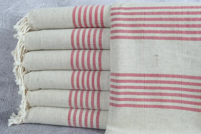 Organic Beach Towel Red Striped Linen Towel, 40x71 Inches