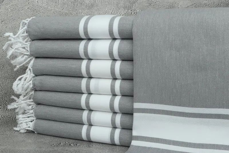 Striped Towel Organic Cotton Dark Gray and Beige, 40x71 Inches