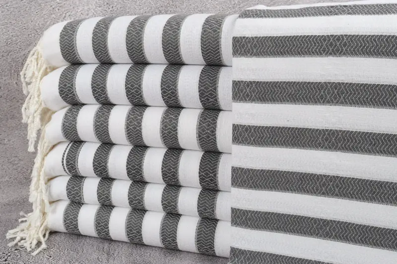 Wedding Gift Towels Turkish Beach Towel Striped Dark Gray, Beige, 36x71 Inches