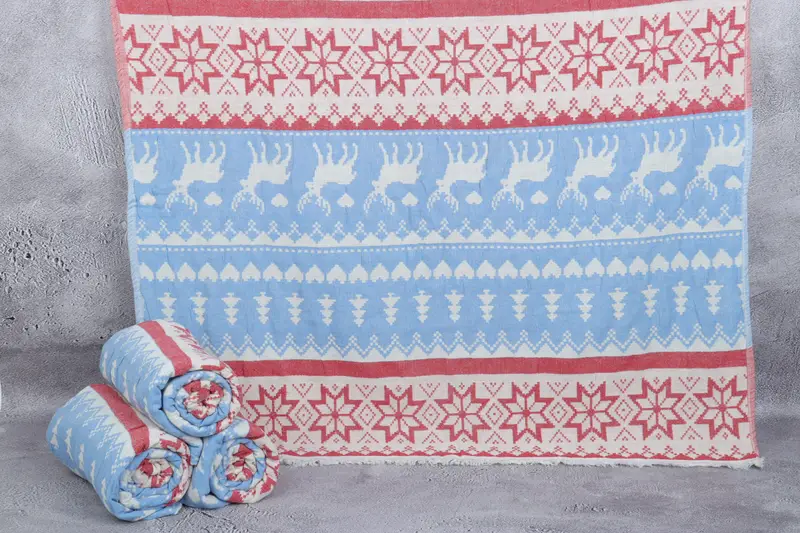 Personalized Turkish Beach Towel Light Blue-Red Patterned, 40x79 Inches