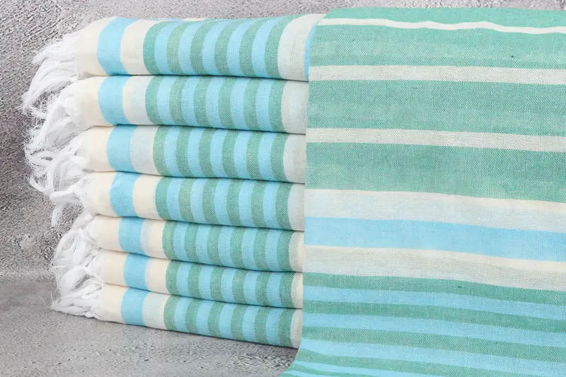 Striped Organic Cotton Beach Towel Green-Turquoise Beige, 40x67 Inches