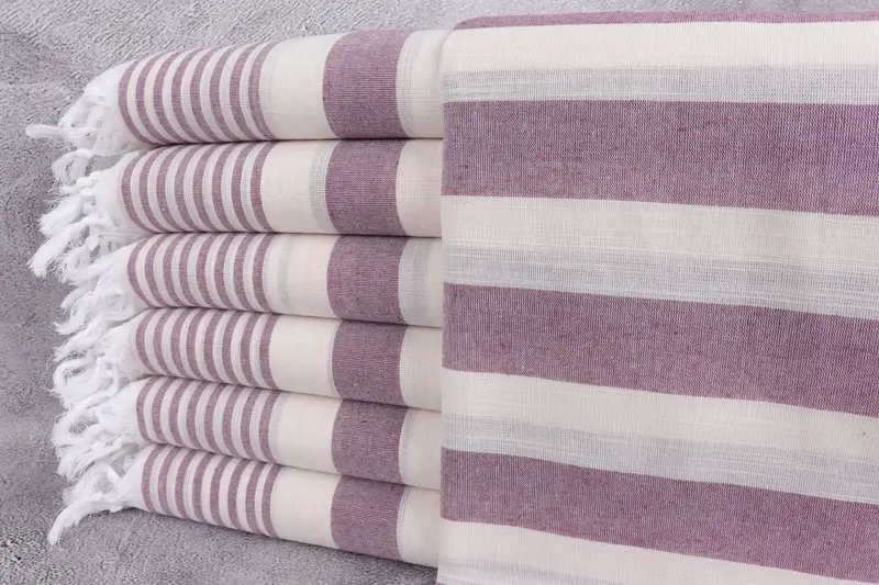 Personalized Turkish Beach Towel Damson Striped, Beige, 36x67 Inches