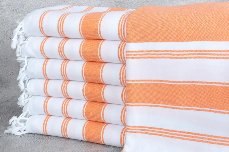 Beach Towel Embroidered Orange Stripes Beige 40x71 Inches