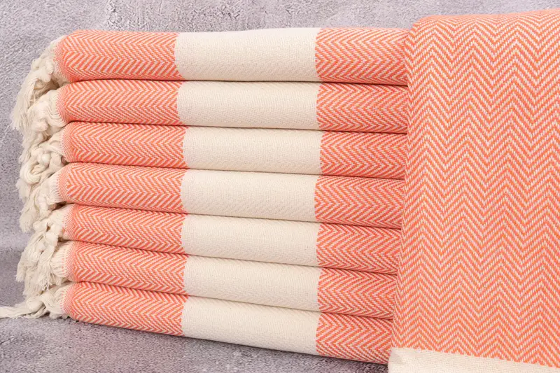 Turkish Organic Beach Towel Beige Chevron, 40x71 Inches