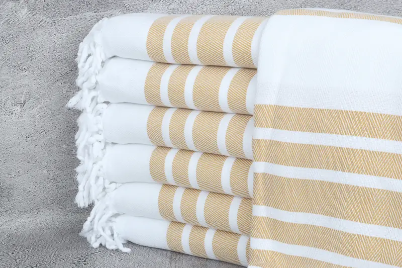 Herringbone Towel Mustard Organic Cotton Beach Towel, 40x71 Inches