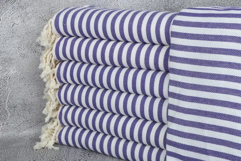 Handmade Purple Cotton Striped Beach Towel, Organic, 40x71 Inches