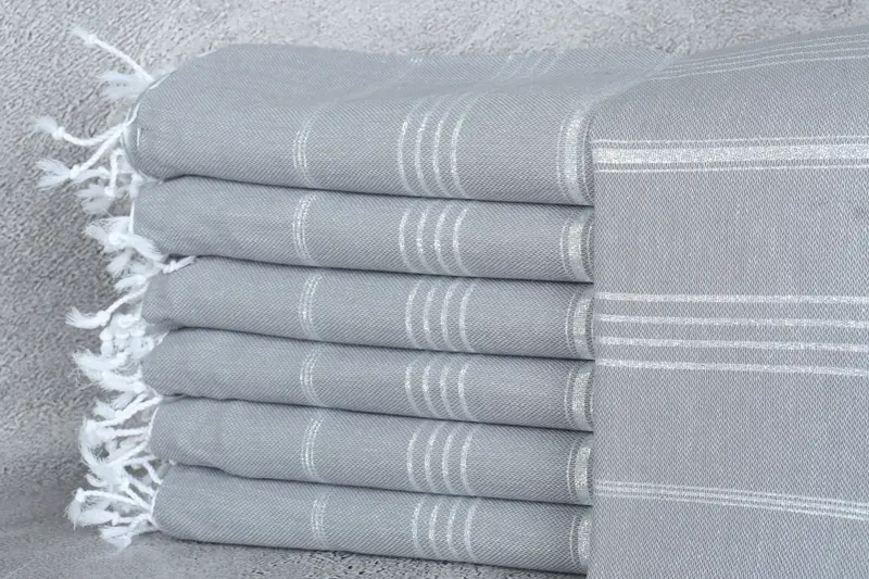 Personalized Turkish Beach Towel Gray-Flush, Striped, 40x71 Inches