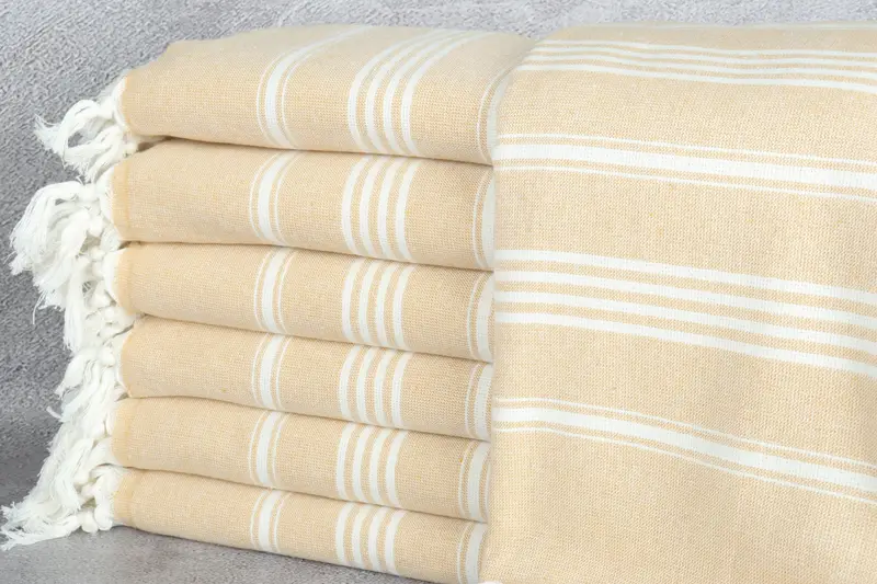 Personalized Gift Mustard Striped Beach Towel, Beige, 40x71 Inches