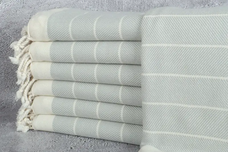 Personalized Towel Monogrammed Beach Towel Light Gray Herringbone, 40x71 Inches