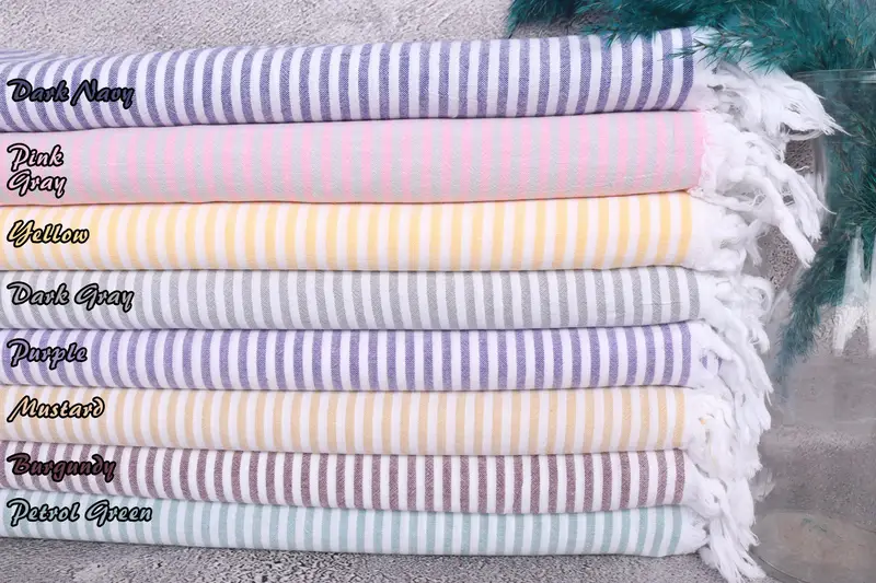 Beach Towel Organic Cotton Beige Stripes, 36x67 Inches