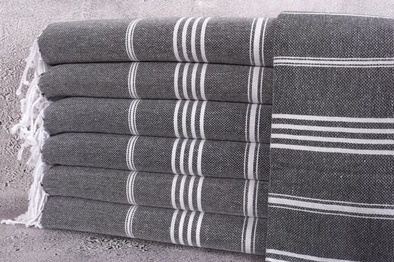 Personalized Beach Towel, Turkish Cotton Beige Stripes, 40x71 Inches