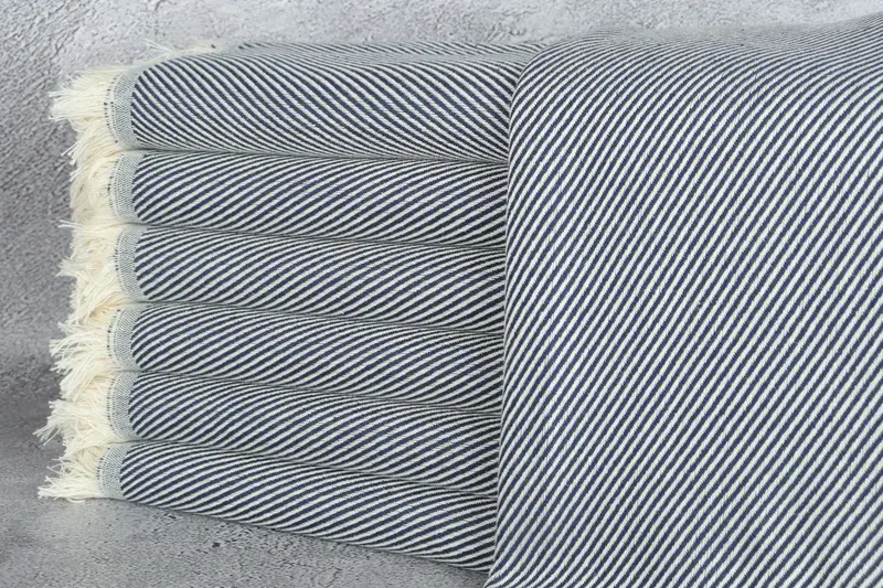 Custom Turkish Beach Towel Navy Stripes, Beige, 36x71 Inches