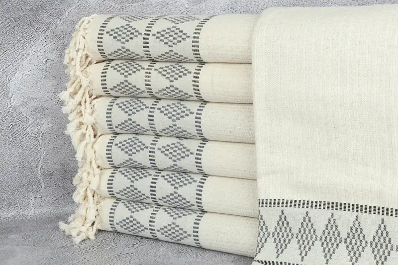 Beach Towel Monogrammed Kilim Design Navy Linen, 36x71 Inches