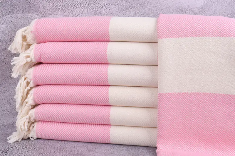 Turkish Beach Towel Organic Cotton Pink Chevron, 40x71 Inches