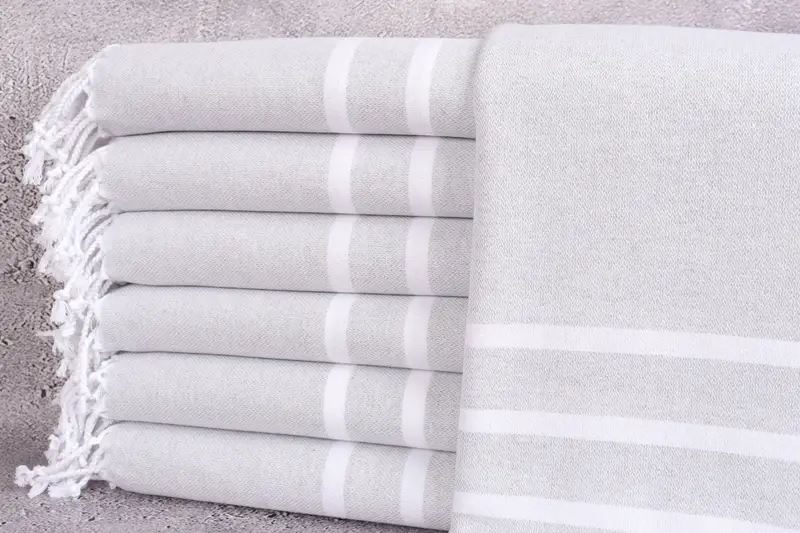 Personalized Organic Beach Towel Striped Beige 40x71 Inches