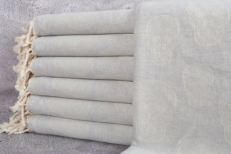 Personalized Turkish Towel, Skull Patterned Beach Towel, Light Gray, 36x67 Inches