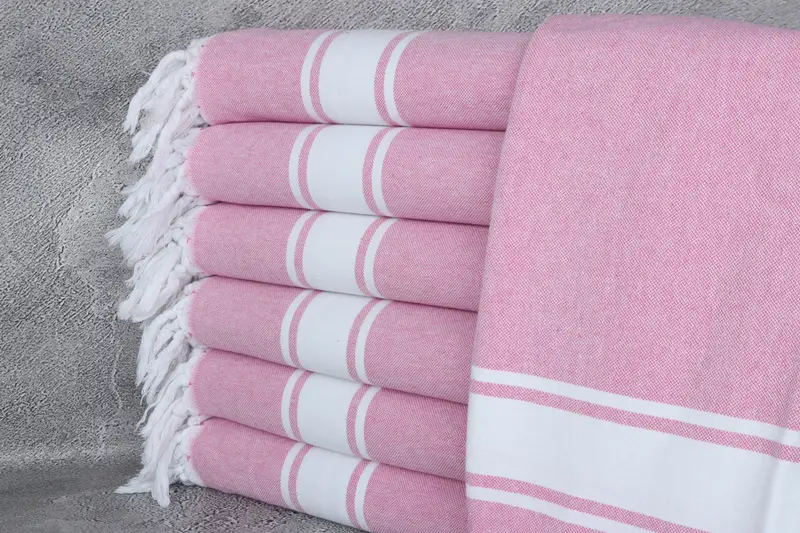 Beach Towel Pink Striped Organic Cotton Towel, 40x71 Inches
