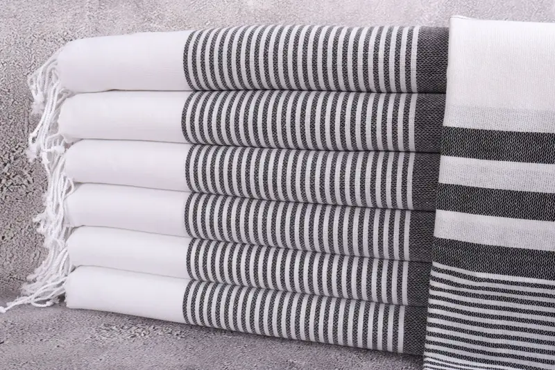 Beach Towel Organic Cotton Beige Stripes, 40x71 Inches