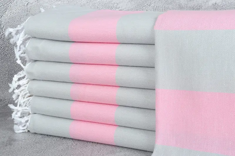 Personalized Pink-Gray Striped Beach Towel, 40x71 Inches