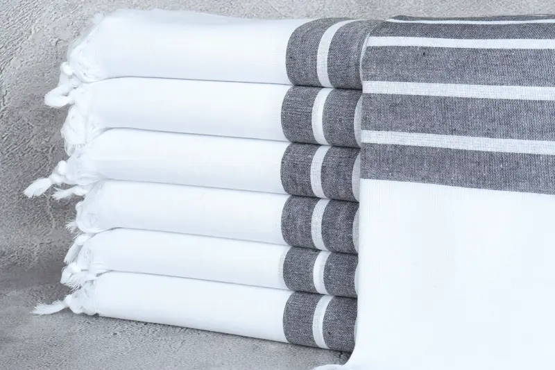 Turkish Beach Towel Personalized Black Stripes, Beige, 40x71 Inches