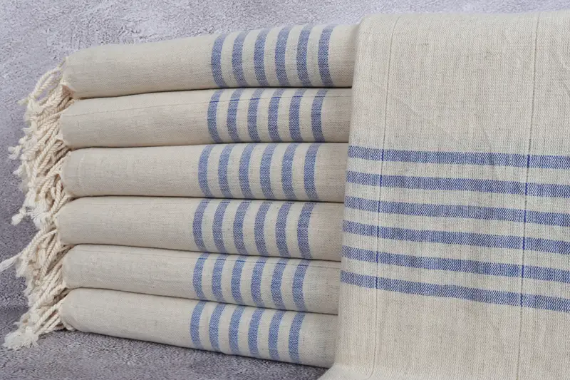 Beach Towel Turkish Cotton Sax Blue Stripes, 36x67 Inches