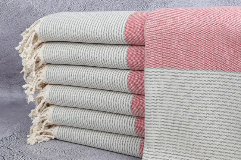 Turkish Bath Towel Beach Towel Dark Gray-Red Striped, Beige, 40x71 Inches