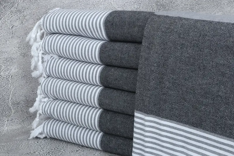 Beach Towel Organic Black and Beige Stripes, 40x71 Inches