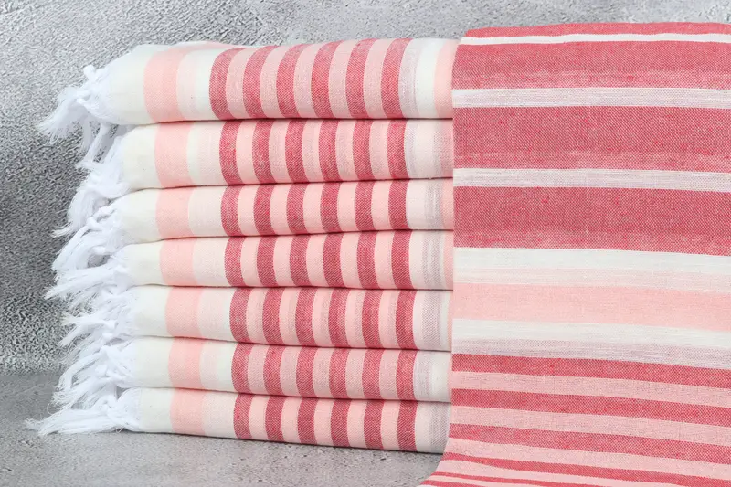 Beach Towel Striped Organic Cotton Coral-red and Beige, 40x67 Inches