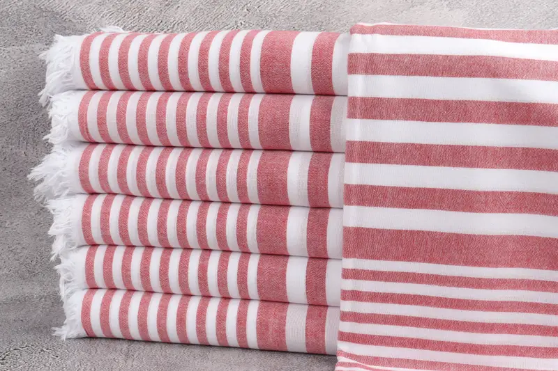 Turkish Bath Towel Red Striped, Beach Towel Beige, 40x65 Inches