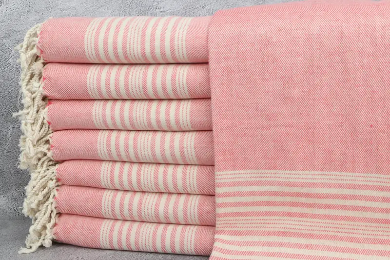 Fuchsia Striped Linen Towel, Beach Towel, 40x71 Inches