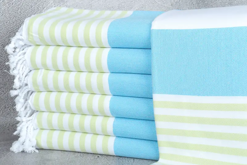 Personalized Turkish Beach Towel Turquoise-Green Striped, 40x71 Inches