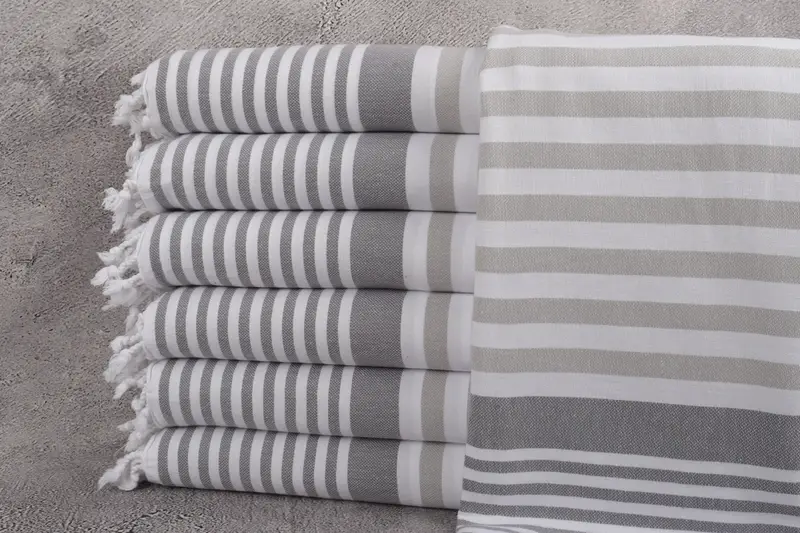 Wholesale Turkish Beach Towel Dark Gray-Light Gray Striped, 40x74 Inches
