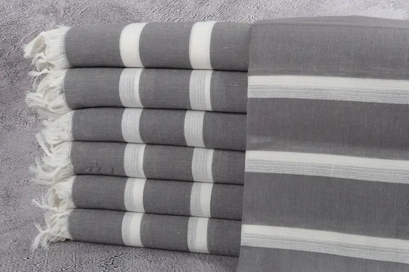 Organic Cotton Beach Towel Brown Stripes, Beige, 38x71 Inches