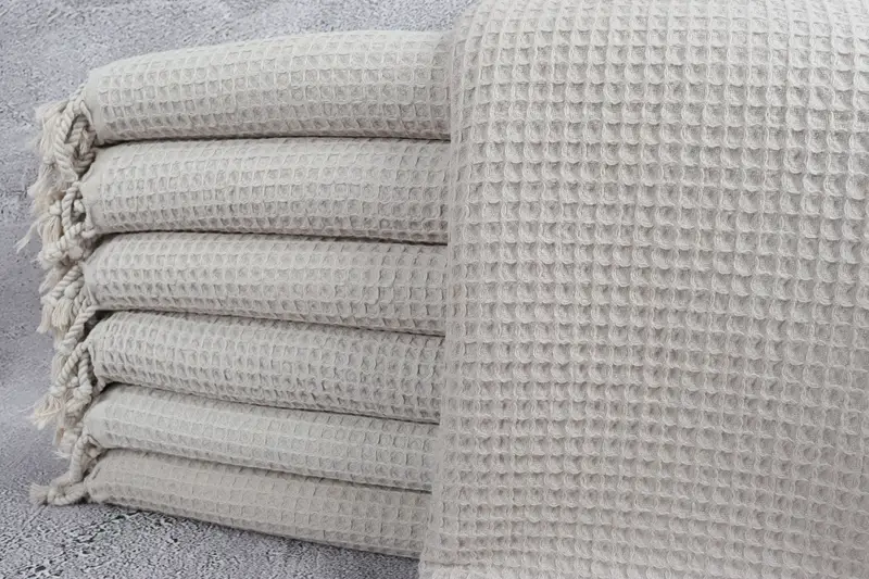 Personalized Turkish Towel Beige Waffle, 36x67 Inches