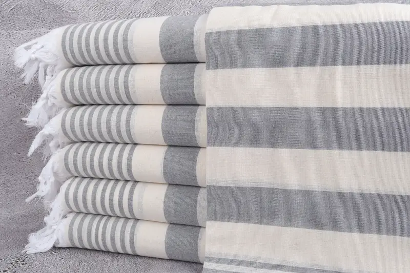 Personalized Gray Striped Beach Towel, 36x67 Inches, Beige Secondary Color