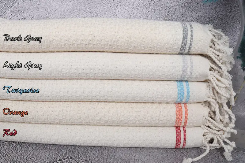 Beach Towel Organic Cotton Striped Beige, 36x67 Inches