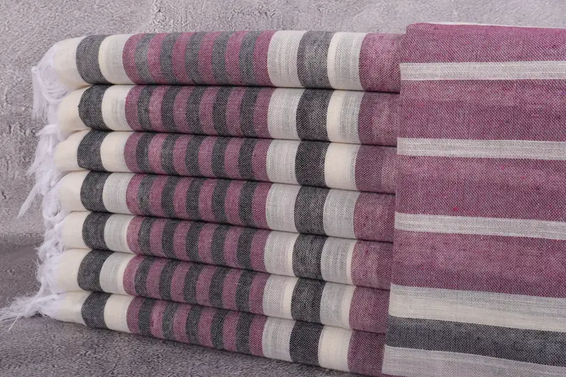 Personalized Organic Beach Towel Striped Beige, 40x67 Inches