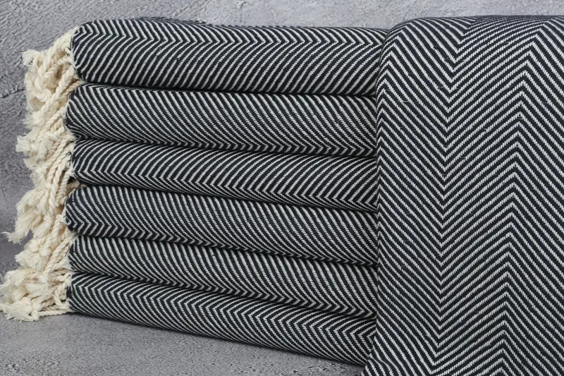 Personalized Turkish Beach Towel Navy Chevron, Beige, 40x71 Inches