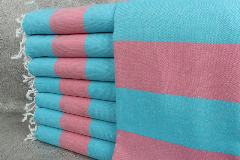 Beach Towel Organic Cotton Blue-Pink Stripes, 40x71 Inches