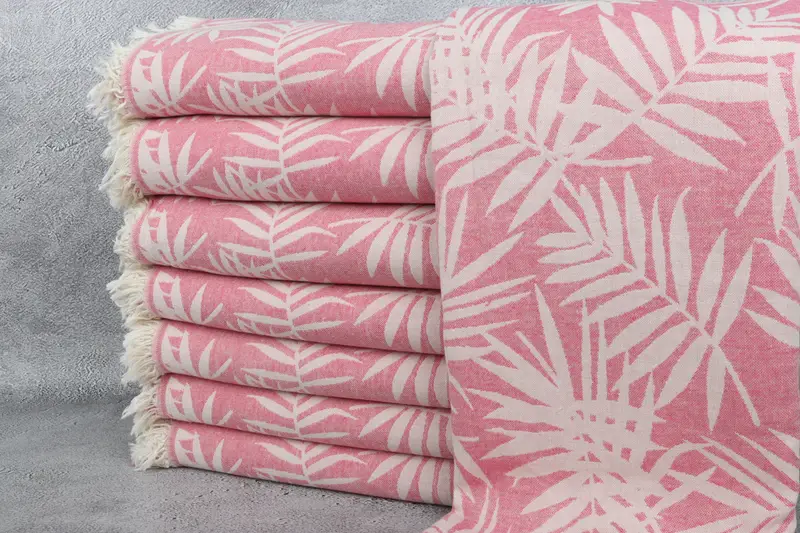 Floral Patterned Beach Towel Organic Cotton Fuchsia, 40x63 Inches