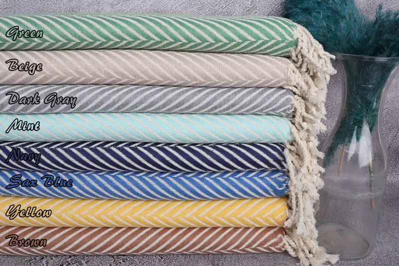Beach Towel Monogram Turkish Cotton Beige Stripes, 40x69 Inches