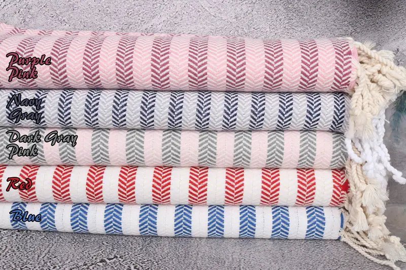 Herringbone Towel Organic Cotton Beach Towel, Beige, 40x71 Inches
