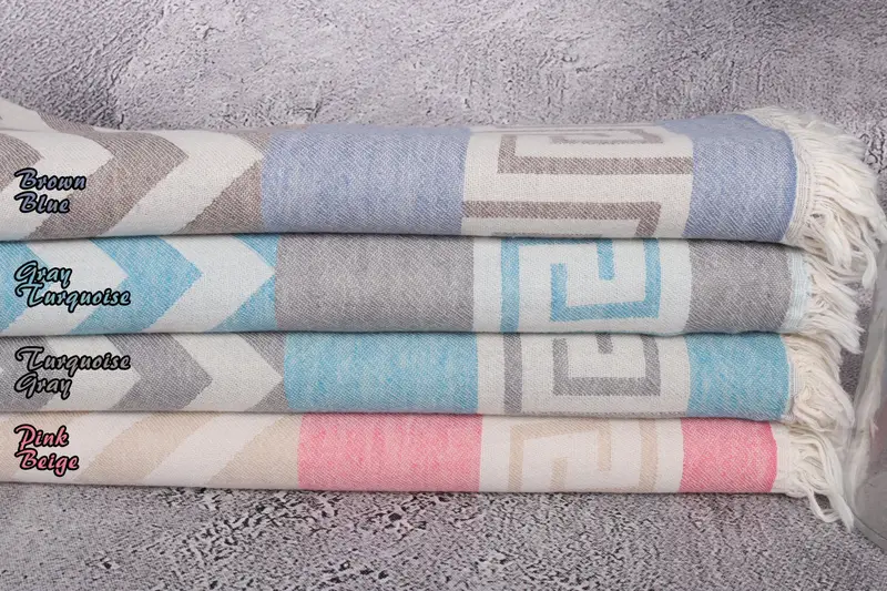 Organic Cotton Beach Towel Beige Geometric, 36x71 Inches