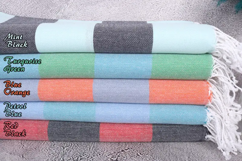Beach Towel Organic Cotton Beige Stripes, 40x71 Inches