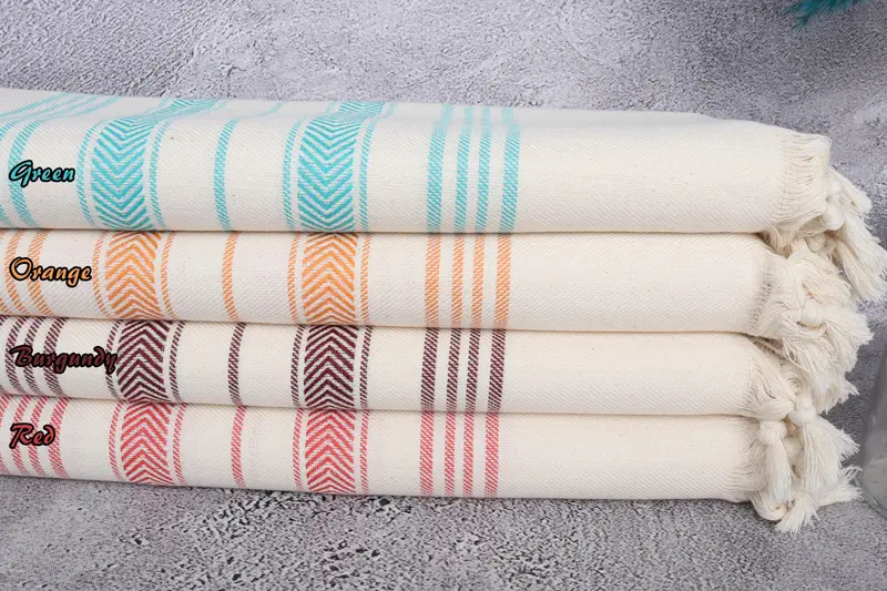 Beach Towel Personalized Turkish Linen Beige Stripes, 40x71 Inches