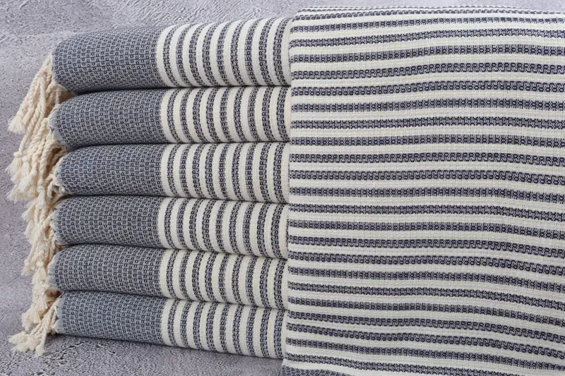 Beach Towel Turkish Cotton Navy Blue Stripes, 40x67 Inches