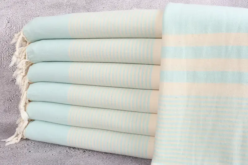 Beach Towel Organic Cotton Striped Beige, 40x71 Inches