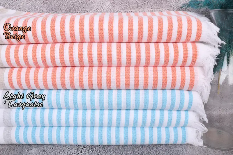 Striped Organic Cotton Beach Towel Beige, 40x71 Inches