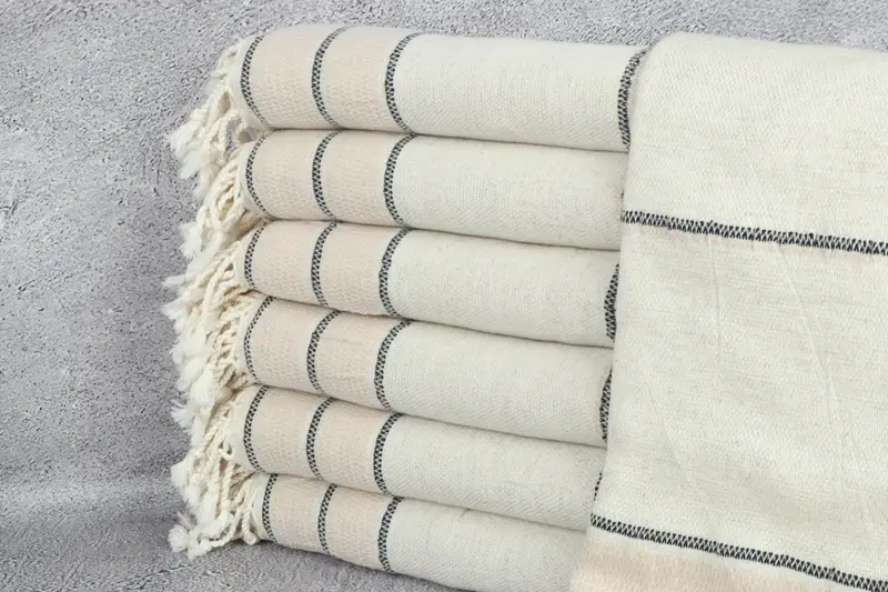 Light Beige Striped Linen Beach Towel, Boyfriend Gift, 36x71 Inches